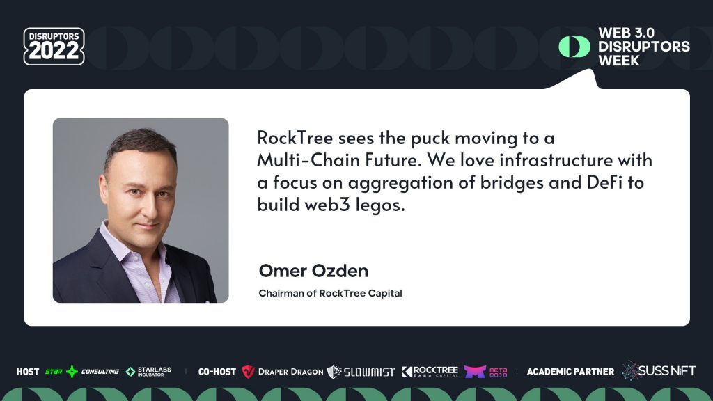 在参加大会前的“Web 3.0快问快答”活动时,石木资本(RockTree Capital)董事长欧阳默(Omer Ozden)表示:“RockTree认为,未来是多链并存的世界。我们看好重视将跨链桥和DeFi结合起来,让我们能在Web 3时代像搭乐高积木一样进行创造的基础设施。”