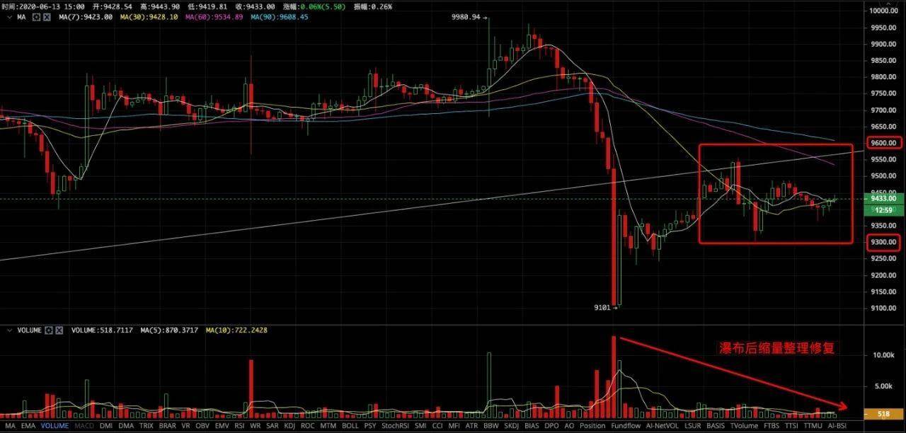 四小时线来看,布林轨道开口向下运行,币价运行在布林中轨下方运行,逐渐站稳中轨,MA5均线下穿各均线与MA10.MA20均线粘合拐头上行,即将再次与MA10均线交叉,短期内在币价下方形成一线支撑,MA20均线交叉MA30均线向下运行,在币价上方形成阻力压制,目前币价运行在其下方震荡,处在MA5均线上方,,MACD快慢粘合在零轴下方平行移动,空头能量逐步缩量,RSI三线拐头下行,即将进入超卖区域,KDJ金叉向上发散,整体来看以太还是有很大上升空间的,操作上建议站稳四小时boll中轨即可开多,如短期有所回调那么等待最佳点位进场空单。